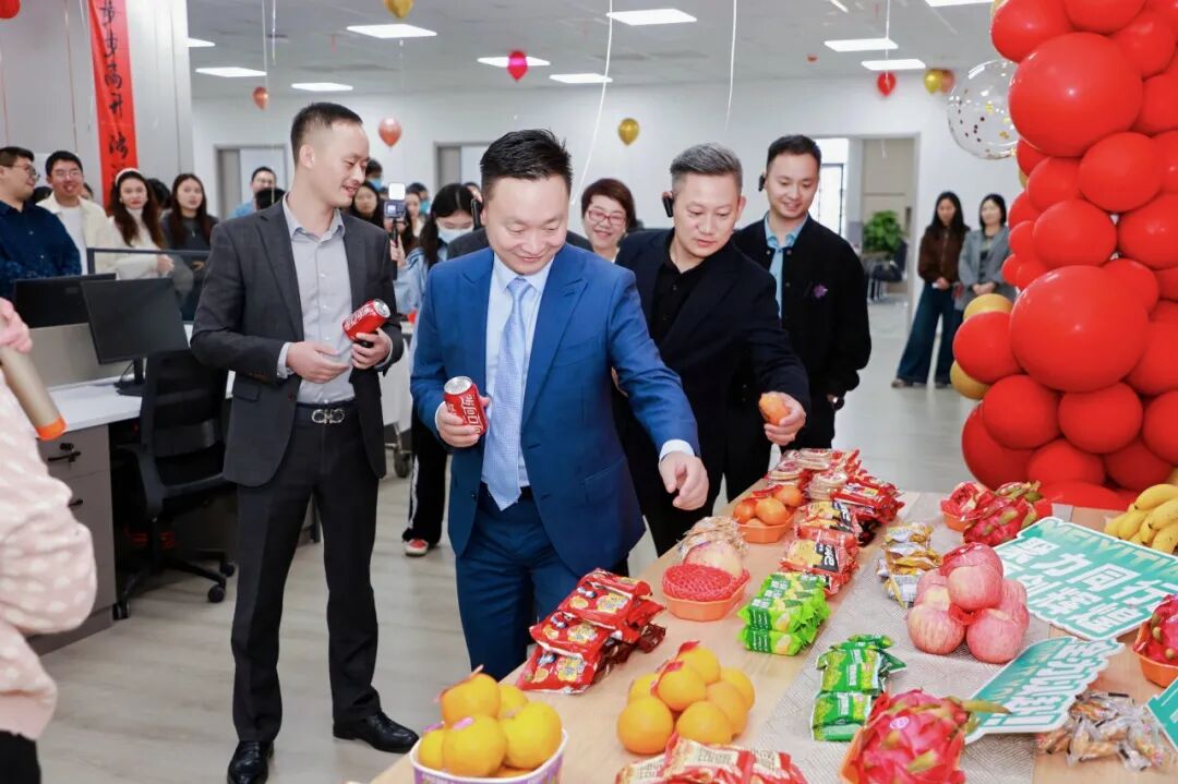 参观完新基地后,大家移步至办公区。这里正在举行由职能部门精心筹备的乔迁仪式,现场活动精彩纷呈,氛围十分热烈。